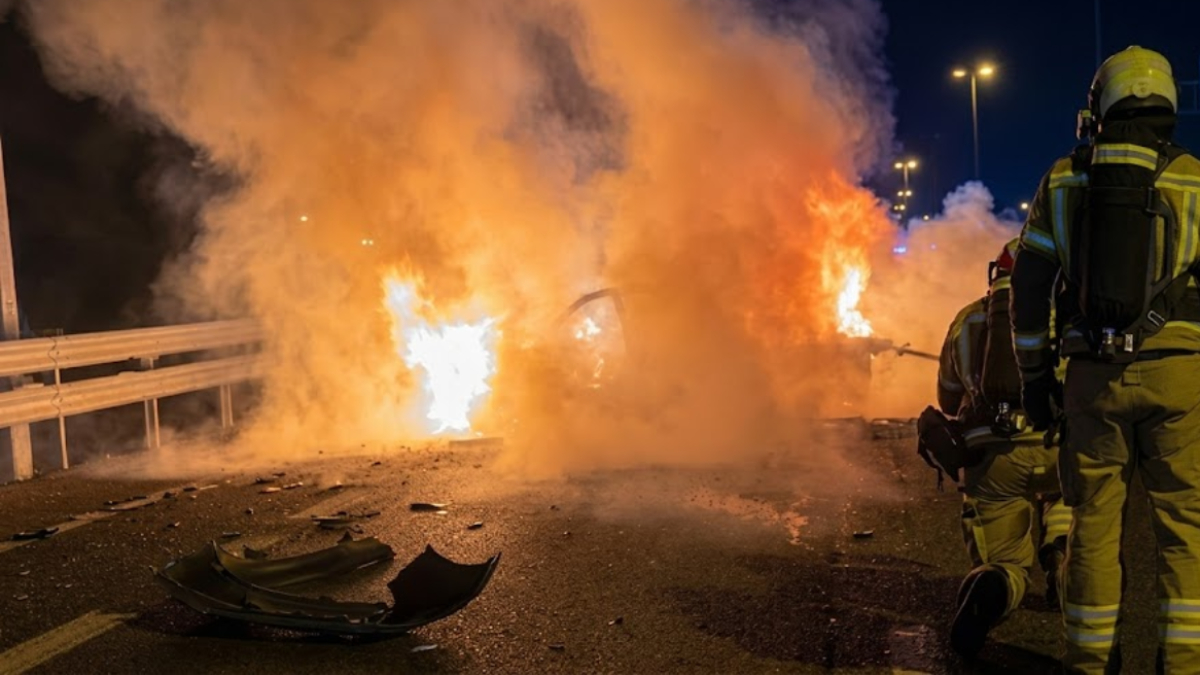 Inicio El incendio de un vehículo en la M-50 provoca retenciones de tráfico a la altura de Móstoles El incendio de un vehículo en la M-50 provoca retenciones de tráfico a la altura de Móstoles