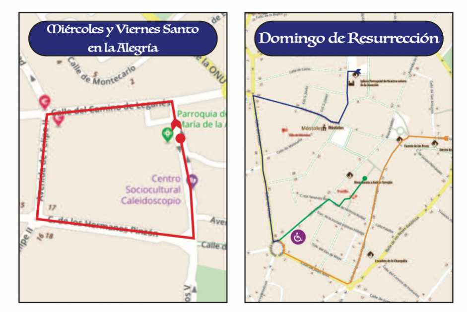 Experiencia sensorial para personas ciegas. El jueves 14 de abril, de 11 a 12:30 horas en la Ermita de Nuestra Señora de los Santos, un grupo de personas ciegas podrán ‘ver’ las imágenes de la Borriquilla, Piedad y Cristo Yacente a través de sus manos. Gracias a la colaboración del Ayuntamiento de Móstoles, se instalará una tribuna en la avenida Dos de Mayo, a la altura del Bar Torrecilla, con el fin que desde la misma las personas con movilidad reducida puedan ver cómo procesionan los pasos y sus hermanos de luz. Esta tribuna servirá para ver las procesiones del Domingo de Ramos, Jueves y Viernes Santo y Domingo de Resurrección.